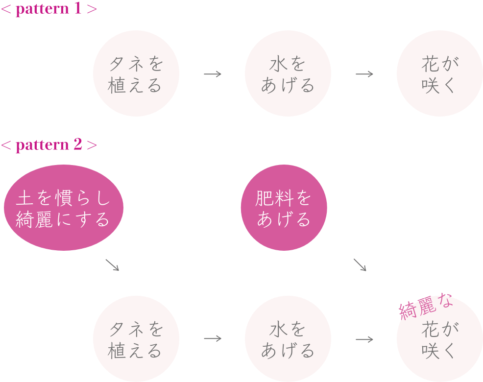 お花を咲かせる方法を考えてみましょう。